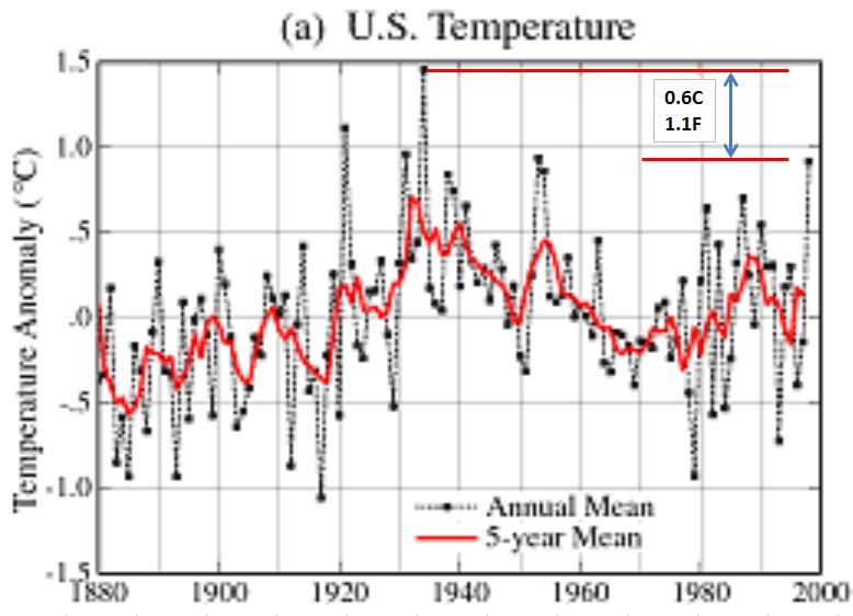 Nothing could be further from the truth. As of 1999, NASA showed that 1934 was more than one degree (Fahrenheit) warmer than 1998, and that 1921, 1931 and 1953 were all warmer than 1998.