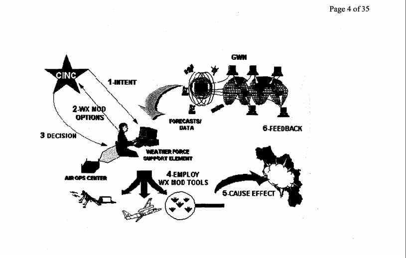 ” A global, precise, real-time, robust, systematic weather-modification capability would provide war-fighting CINCs [an acronym meaning “Commander IN Chief’ of a unified command] with a powerful force multiplier to achieve military objectives.