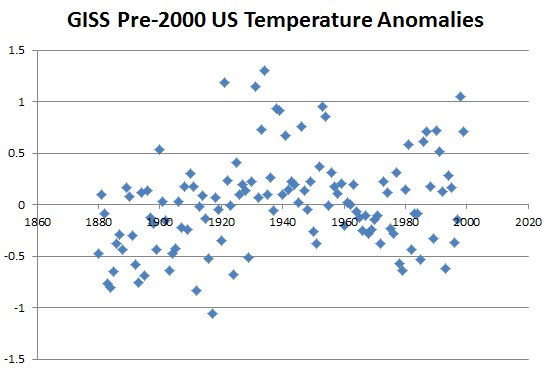 Michael Hammer has found the original uncorrupted GISS US temperature data on John Daly’s web site. Prior to GISS/USHCN perverting the data set in the year 2000, the 1930s was the hottest decade.